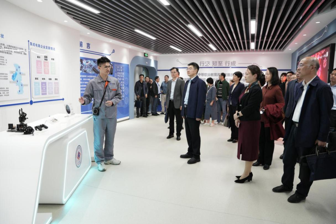 会议期间,全体参会人员现场考察了浦口中专办学点智能制造、集成电路、现代文旅三大产业学院的建设情况。
