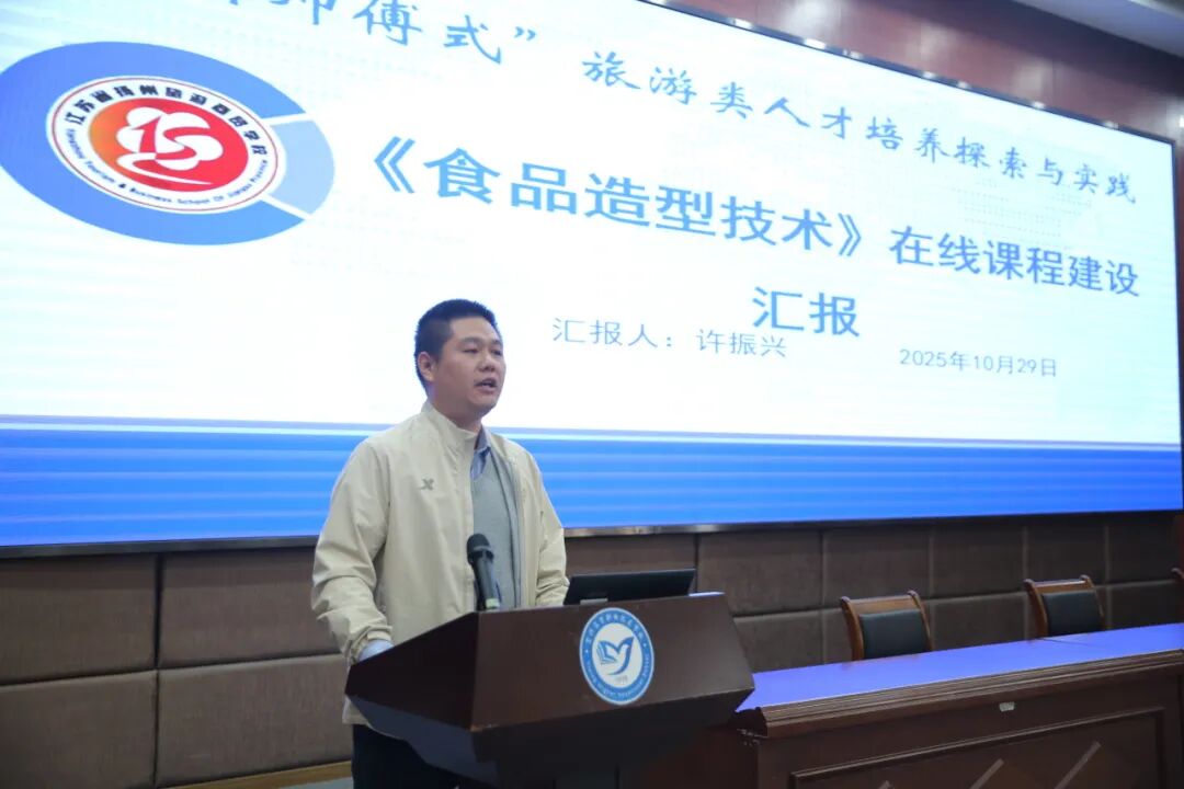 在课程及资源建设交流环节,专指委旅游管理专业教学资源库负责人费旭明介绍了院级资源库的建设进展与应用机制。相城中专办学点崔小丽、扬州旅游商贸学校办学点许振兴、无锡旅游商贸分院冯霞敏三位老师,分别围绕《咖啡制作》《食品造型技术》《导游基础知识》课程,汇报了在课程设计、资源开发、在线教学、课程思政方面的具体做法与成效。