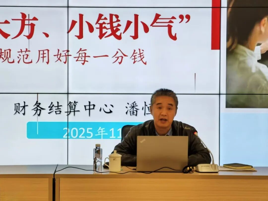 潘恒楚主任给大家解读了“如何过好‘紧日子’,如何加强内部控制管理、如何做好原始凭证的基本规范以及一些常见财务业务的重要注意事项”,内容涵盖单位财务规则、管理规范、内控体系建设还有最新政策法规解读和案例分享,既有理论指导,又有实际操作,深入浅出地阐明了财务管理中的关键环节和风险防范要点。专题讲座紧密结合工作实际,针对性强,对提升学院财务规范化管理水平具有重要指导意义。