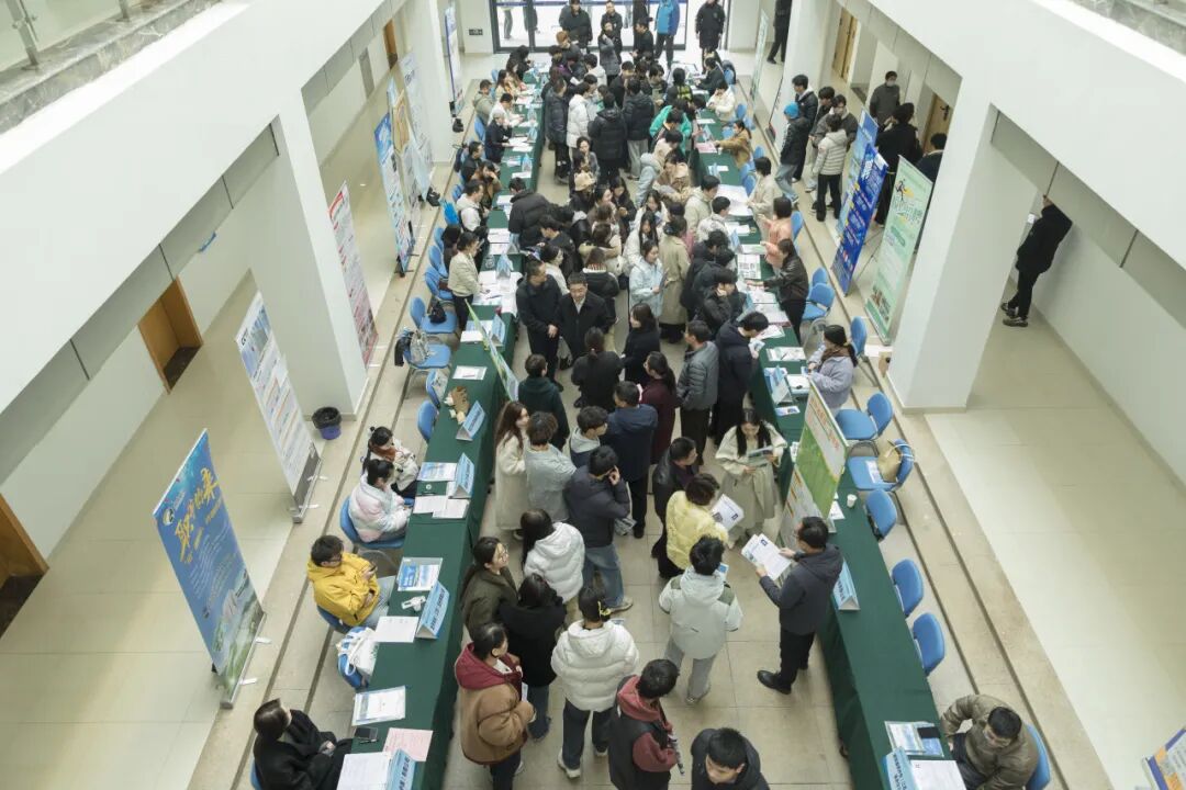招聘会现场气氛热烈,秩序井然。毕业生们手持简历,积极与心仪企业的招聘代表沟通,详细了解岗位要求、职业发展前景。