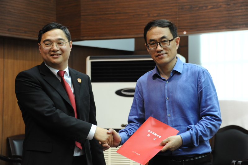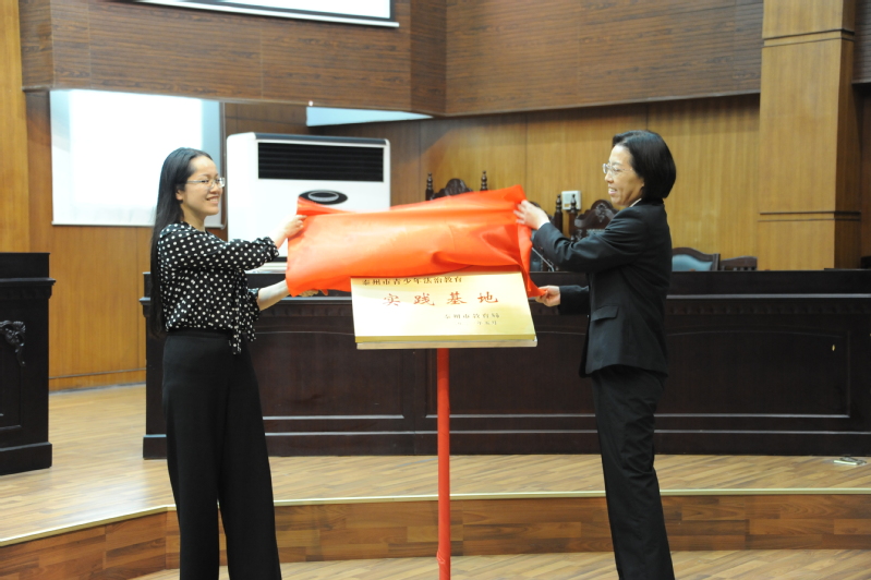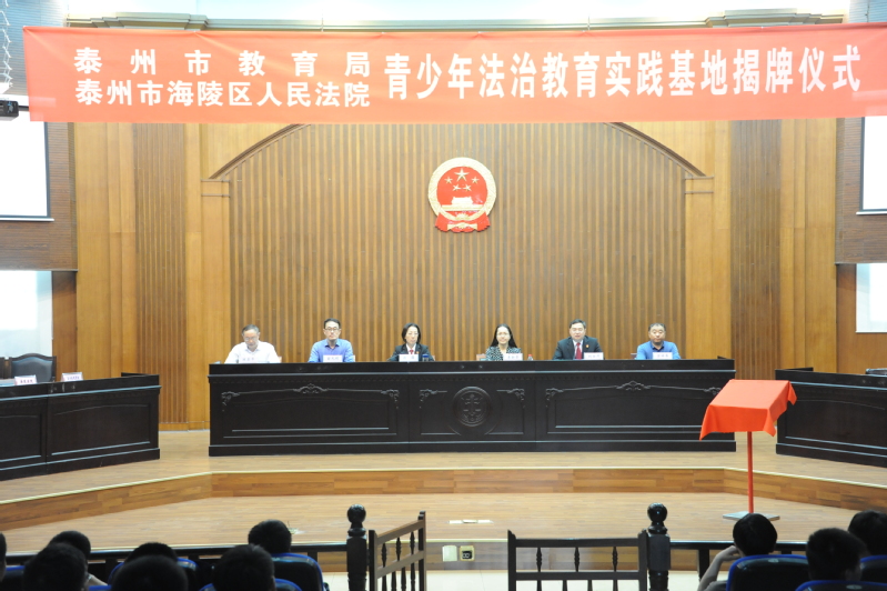 然后,李新荣和蒋蓓共同为“泰州市青少年法治教育实践基地”揭牌。海陵区人民法院与我校签订了“法治校园”共建协议。