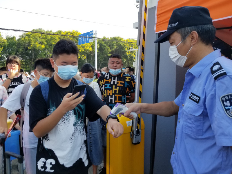 校门口,值班人员和保安人员认真细致把好学生进校“第一关”,学生积极配合学校检查“苏康码”、“行程码”,进行测量体温后进入校园。报到现场,班主任为新生办理入学手续,收交有关材料,嘱咐入学后的注意事项。志愿者们奔走忙碌,为新生引路、搬运行李,新生从进校到报名注册、入住等各个环节,都有专人负责引导,环环相扣,忙而不乱,新生们感到方便、快捷、安全和温暖。老生按照班主任老师约定的时间准时到自己所在教室报到注册。