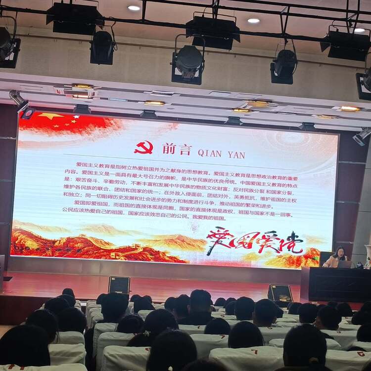 4月11日下午,泗阳中专食品工程系在校报告厅开展的“爱国爱党”思想政治教育主题讲座活动。讲座由系部英语教师黄岳主讲。系部全体高一学生聆听了讲座。
