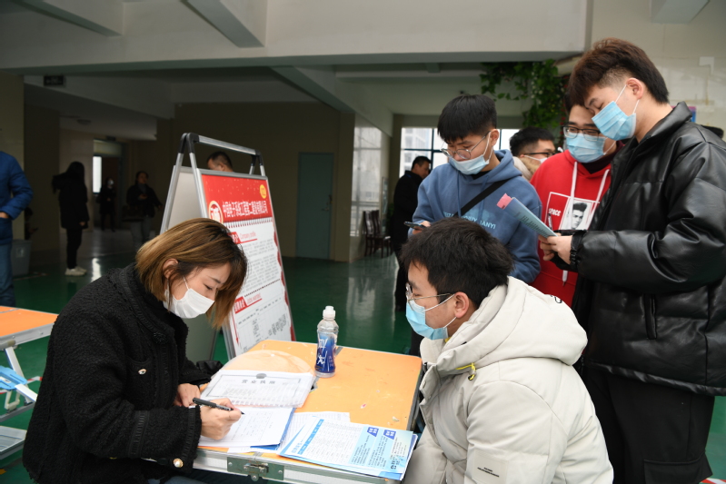 参会人员严格按照疫情防控相关要求进入会场,在招聘会现场,毕业生们手持自己精心准备好的自荐书和简历,满脸自信地穿梭于人流之中,主动了解用人单位的情况,积极与招聘人员交流,现场达成意向396人次。各二级学院分管院长、就业科长以及班主任现场办公,为同学们提供全面的就业指导服务。